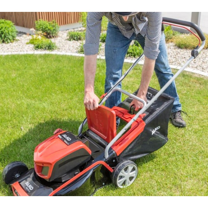Бездротова газонокосарка Al-Ko 42.9 LI — автономна садова техніка з шириною косіння 42 см, регульованою висотою зрізу в 7 положеннях від 30 до 75 мм. Оптимальний варіант для роботи на ділянках площею до 400 м2. Безщітковий двигун приводиться в дію від літій-іонного 40 В акумулятора (в комплекті блок на 4 Ah і зарядний пристрій). Повністю зарядженого акумулятора вистачає на 20 хвилин безперервної роботи. Тканинний травозбірник на 60 л з індикатором наповнення.