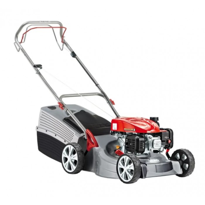 Максимальна ширина косіння становить 460 мм. Після косіння трава потрапляє у великий травозбірний контейнер ємністю 65 літрів, рівень заповнення якого легко контролюється спеціальним індикатором. Висота зрізу трави легко регулюється у 7 положеннях – від 30 до 75 мм.