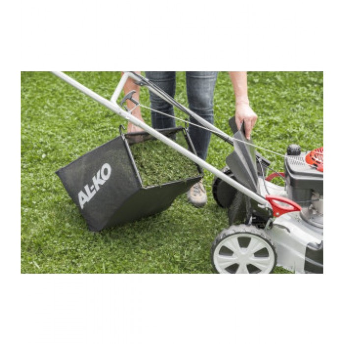 Газонокосарка бензинова AL-KO Easy 5.10 SP-S - нова та комфортабельна, самохідна бензинова газонокосарка. Газонокосарка AL-KO Easy 5.10 SP-S має ширину різу 51 см, газонокосаркаAL-KO Easy 5.10 SP-S гарантує швидке просування вперед, навіть у садах середнього розміру (площею) до 1800 кв. Регулювання висоти різу виконується централізовано, в 7 ступенів, від 30 мм до 75 мм. Газонокосарка AL-KO Easy 5.10 SP-S приводиться в дію потужним двигуном (2,3 кВт) AL-KO Tech. Ця модель виконує стрижку газону, уловлювання та мульчування скошеної трави, та викидання мульчованої скошеної трави з бокового каналу назад на газон як добрива. Зрізана трава з газону потрапляє в кошик травозбірника ємністю 60 л.