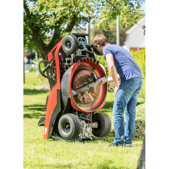 Довгий період застосування - місткий травозбірник 180 л з телескопічною ручкою та об'ємний паливний бак 6 л дозволяє застосовувати трактор-газонокосарку без зупинки на спорожнення та дозаправку відповідно.