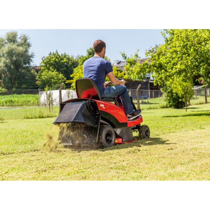 Райдер SOLO by AL- KO R 13 - 72.5 HD - ефективний самохідний трактор-газонокосарка з бензиновим 4-тактним двигуном B&S Powerbuilt 3130 AVS. Тип приводу 2WD, гідростатична коробка передач із ножним перемиканням, електромагнетична муфта ножа. Обробка 72 см ділянки за один прохід з регульованою в 7 положеннях висоти зрізу від 30 до 80 мм. Швидкість руху райдера до 8 км-год. 13 - 72.5 HD