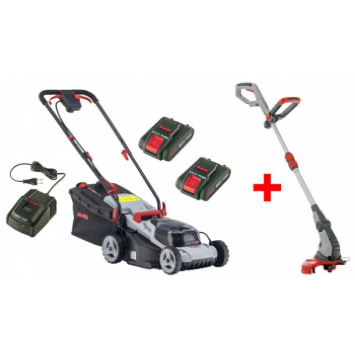 Набір акумуляторного садового інструменту AL-KO Easy Flex: газонокосарка AL-KO 34.8 Li + триммер AL-KO GT 2025 - набір садових акумуляторних інструментів з лінійки інструментів AL-KO Easy Flex, що складається з газонокосарки та трім. Крім двох інструментів, набір включені 2 акумулятори 20 В ємністю 2,5 А-год і зарядний пристрій. Газонокосарка AL-KO 34.8 Li Easy Flex оснащена травозбірником місткістю 30 л та захисним кожухом, що закриває корд із ліскою. Тример акумуляторний AL-KO GT 2025 Easy Flex з телескопічною штангою, поставляється разом із запасною шпулькою.