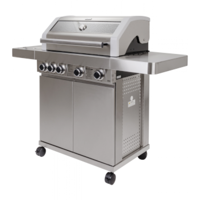 Гриль газовий Masport BBQ S/S4 - новинка модельного ряду магазину ALKO-Instrument, оригінальний товар Нова Зеландія. Газовий гриль Masport BBQ S/S4 - сучасний, високотехнологічний та надійний мобільний апарат для приготування їжі на свіжому повітрі. Газовий гриль Masport BBQ S/S4 отримує живлення від газового балона, який розташовується в нижній закритій шафі. У газовому гриліMasport BBQ S/S4 є 4 основні газові пальники під решіткою, а також бічна та задня пальники. Гриль має термостійке скло, вбудоване в кришку, завдяки якій можна відстежувати перебіг приготування. Елементи керування з підсвічуванням.