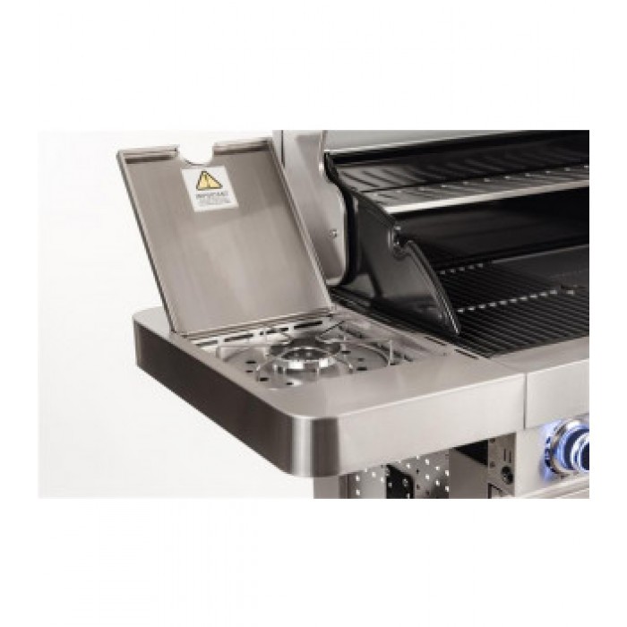 - Збоку (праворуч) розташований додатковий керамічний пальник 3 кВт, для покращення можливості приготування їжі (підігрів їжі або приготування соусів).