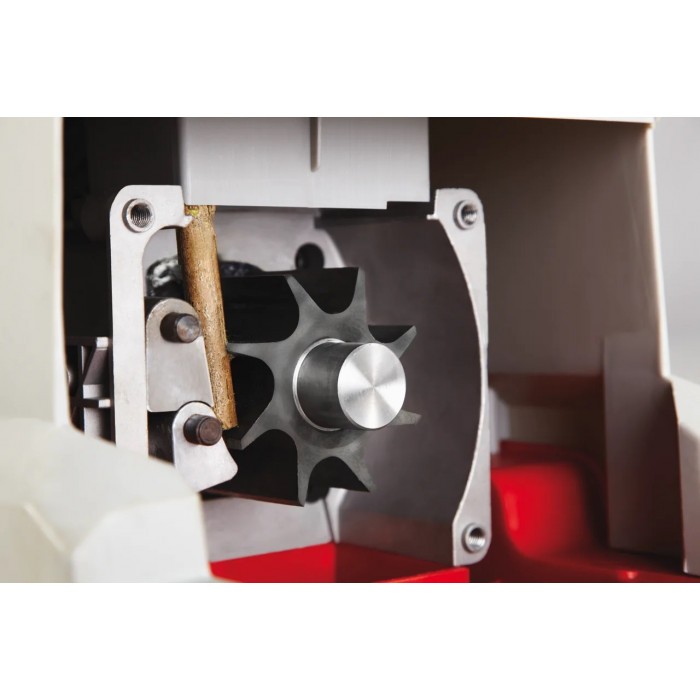 - Потужний безпечний електродвигун - електромотор дозволяє запускати подрібнювач від звичайної електричної розетки з напругою 220 В, є захист від перевантажень та мимовільного включення, запобіжник 16 А. Модель з високою пропускною здатністю - потужний двигун 2800 Вт, роликовий ріжучий механізм з рівномірною подачею. Автоматичний доводчик з обертанням вперед і назад.