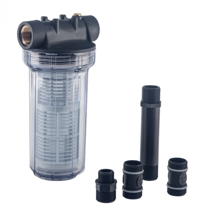 Попередній фільтр AL-KO 250/1' '113721 - фільтр грубої очистки для водопровідних насосів AL-KO Jet + HW. Попередній фільтр AL-KO 250/1'' 113721 комплектується двома 1/1", одним 1/3/4" різьбовими ніпелями, подовжувальною насадкою 1/1'' і знімним сітчастим фільтром, що миється.
