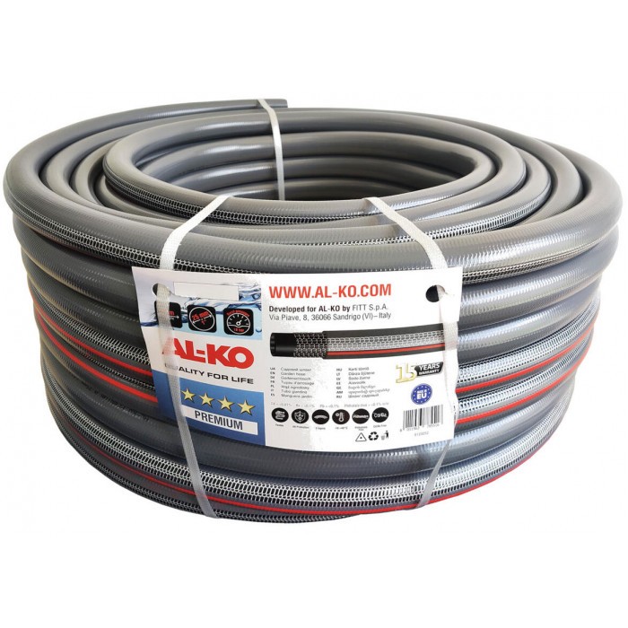 - Садовий шланг Al-Ko Premium 1" вирізняється високою якістю, міцністю та зручністю використання.