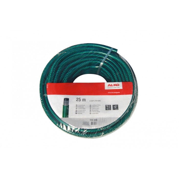 Шланг садовий AL- KO 3/4" (19 мм), 25 м- Тришаровий, зовнішній шар із захистом від стирання та ультрафіолетового випромінювання, текстильне перехресне армування, матеріал внутрішнього шару запобігає утворенню водоростей, робочий тиск - 8 бар, температурний режим від - 10 до + 40 ° С, не містить шкідливих речовин (кадмію та барію), зберігає форму, легку вагу.